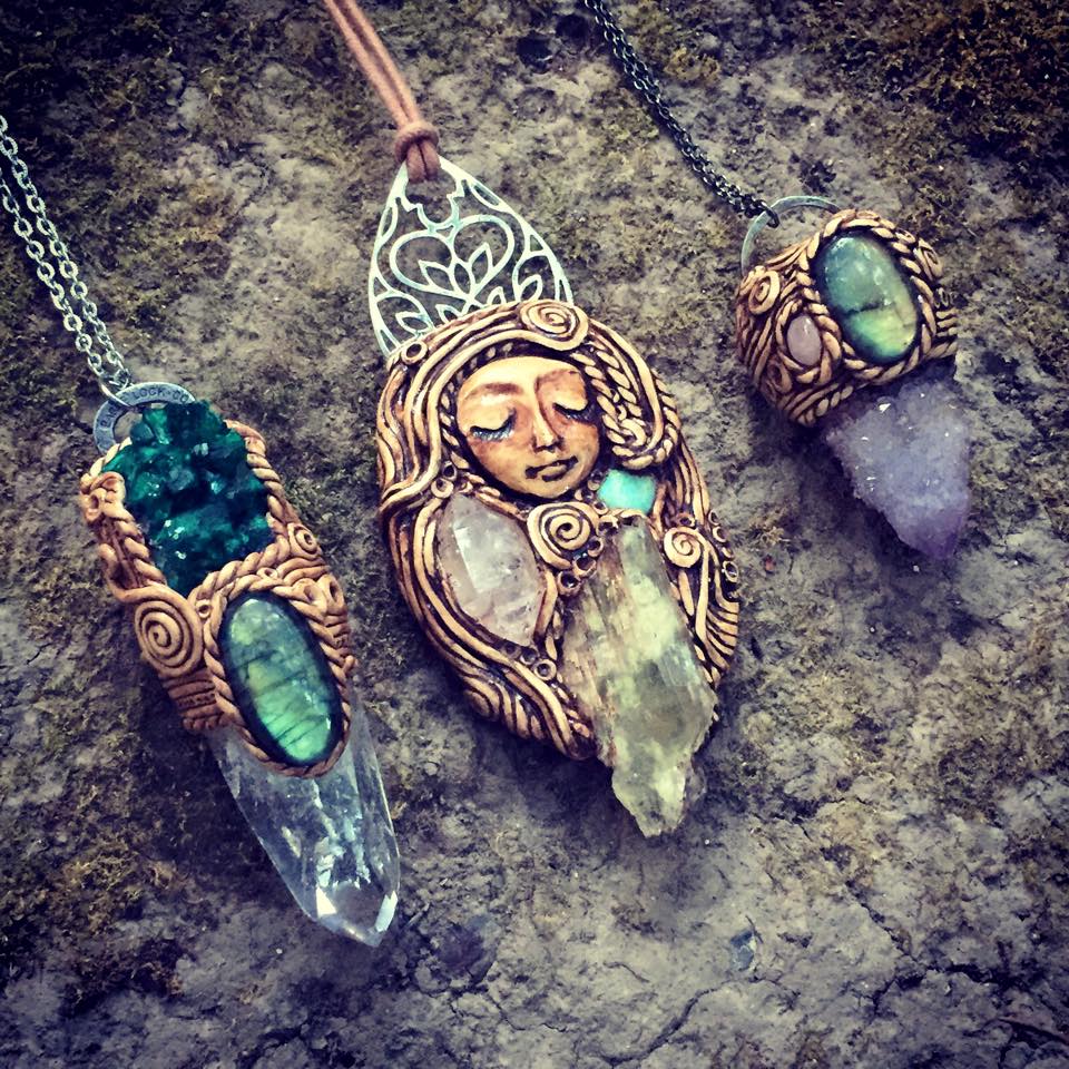 In grade school, before ever finding my love for two dimensional art, I loved jewelry. With my tiny little hands, perfect for maneuvering about threads and seed beads, I began making friendship bracelets and beaded jewelry. Later, as an adult, I worked in a retail jewelry store, where I learned to professionally string and knot pearls. So, I guess you can pretty much say I’ve been doing this my whole life. This time around, I am focusing on using genuine gemstone beads and crystals, vegan-friendly materials, up-cycled vintage items, and other materials inspired by the earth. You can see all of my jewelry in my Etsy store. To the left are the prototypes for my 2015 Fall Line that will be released in October.